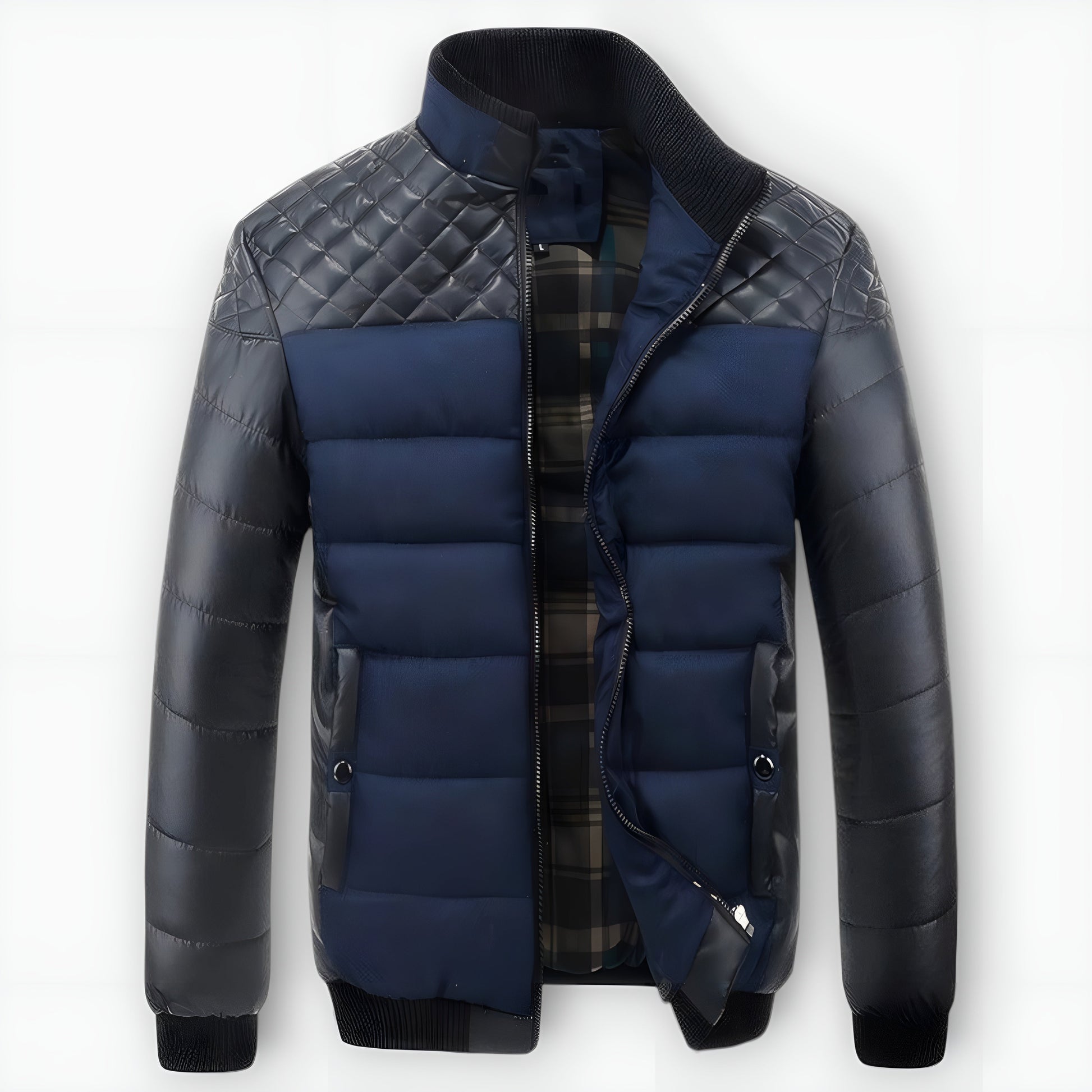 Félix™ | Bicolor gewatteerde leren en stoffen jas