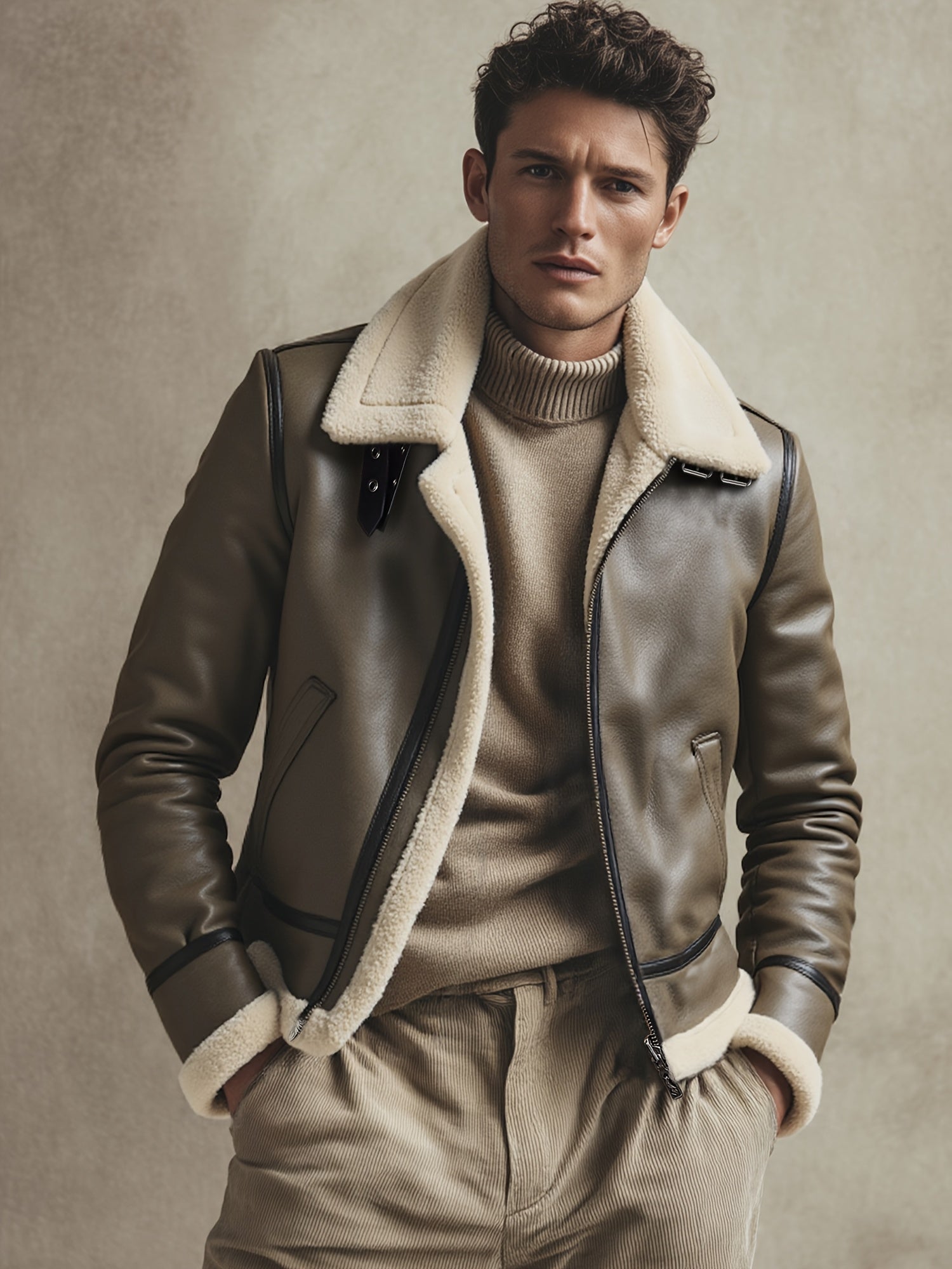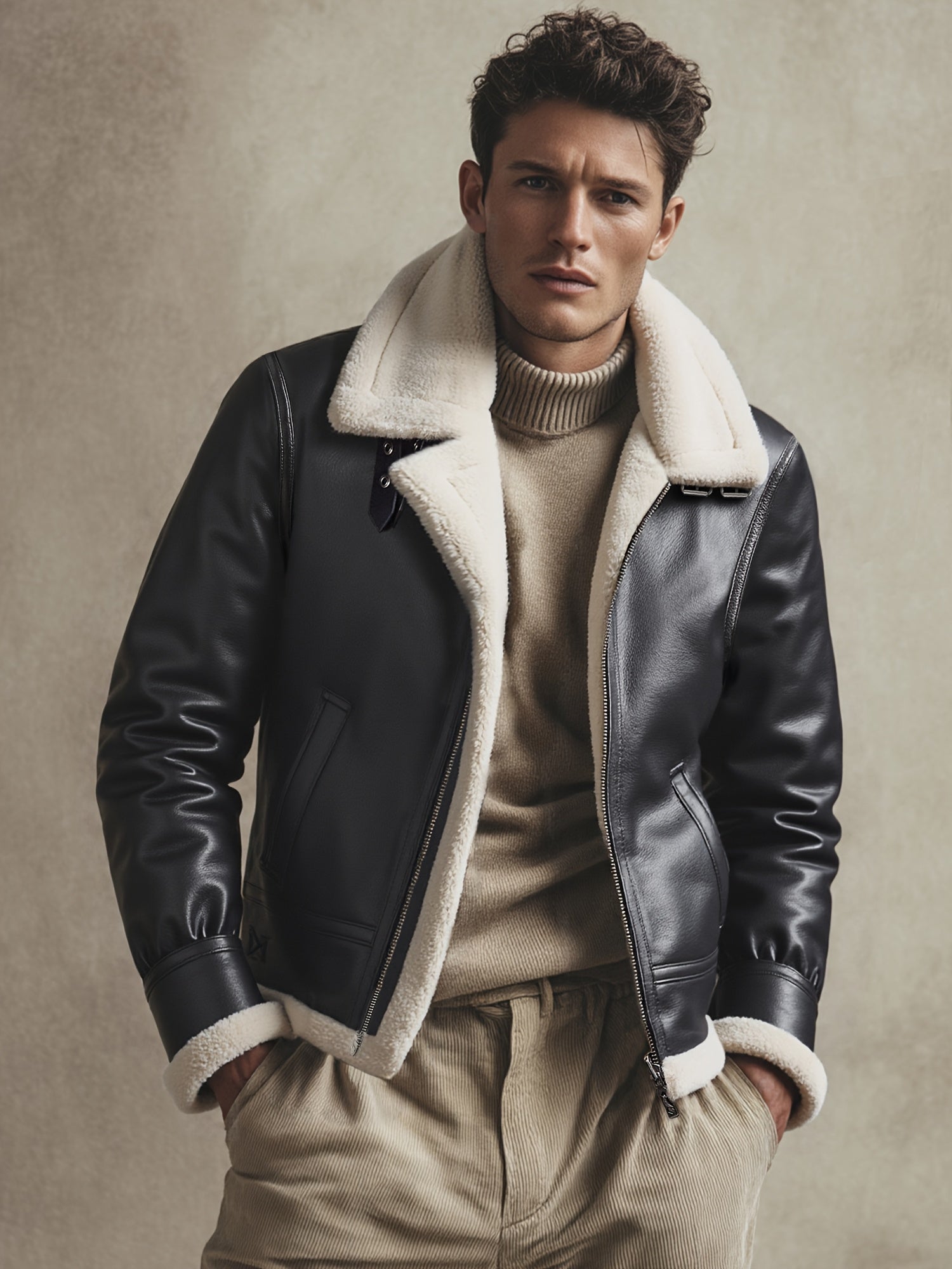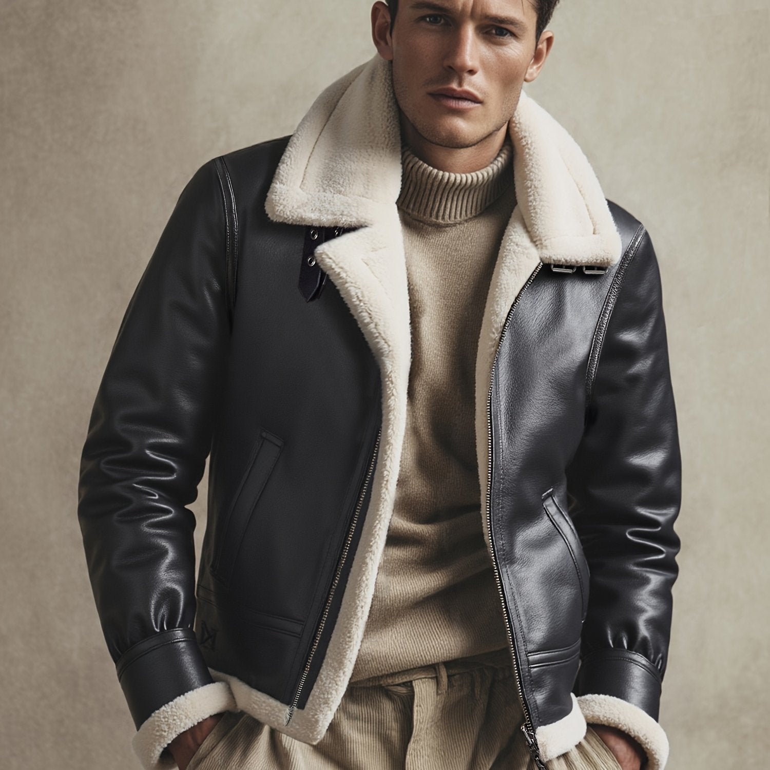 ✓ Iconische stijl – Herinterpretatie van de pilotenesthetiek, diepbruin leer en contrasterende kraag voor een premium uitstraling.